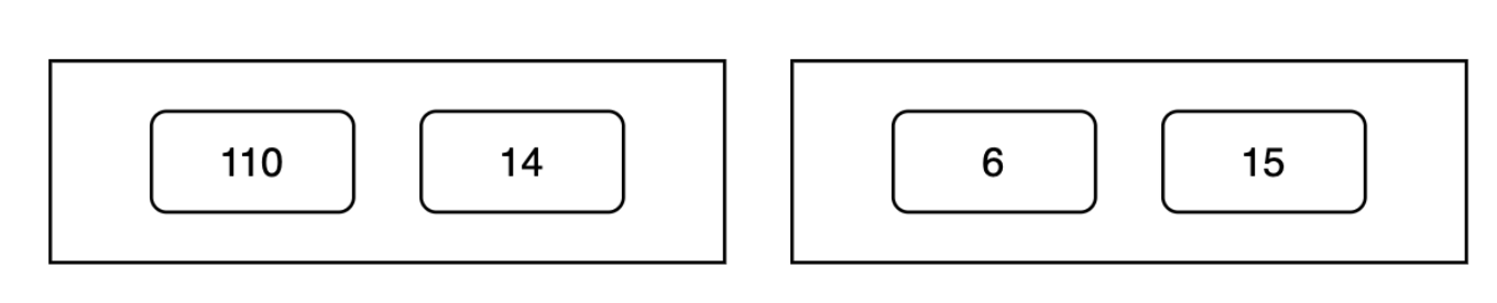Lucene doesn’t compress the entire list at once. Instead, it splits it into fixed-size blocks (called PackedDocDeltaBlock in Lucene). In this example, let’s consider the block size is 2 values per block. This will look like:
